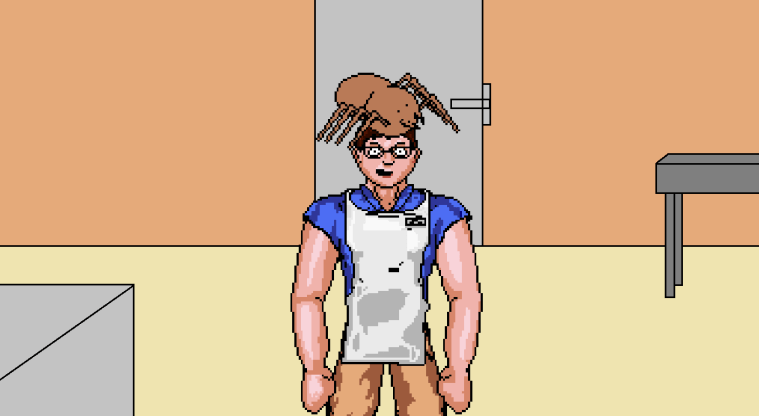 (Mac: The fan’s blowing it back?! AAA!!! BAD IDEA!!! GET IT OFF!! GET IT OFF!!) -Georgia comes running-
