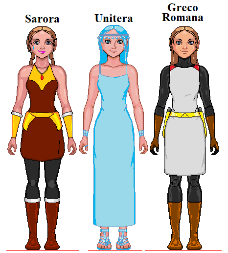 “Ha ha, okay, I’ll parrot what you wrote for me because you thought it’d be cooler coming from a music star.  *Ahem* So, I want to talk about the famed Greco Romana.  An ancient Roman sculptor within the XI universe had a vision from the future of the CFA fighter Sarora that lived during the era of Nix T. For.  This sculptor built a statue based on the woman he saw.  That statue was stolen by aliens, ha ha ha!  Elena and Locket got it back and learned the tragic history of a dying alien race, and how these creatures had tricked the man into building this image using their blue rocks while constructing a duplicate for the man made of ordinary stone.  The man, however, agreed to help finish both statues once he learned of the aliens’ sad plight, and soon Unitera and Greco were finished.  Due to the blue rock, Uni came to life as an organic machine and went on to be the last queen of the dying Coocoofarians.