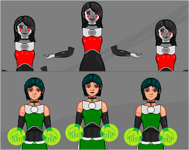 Every word of Faye’s story is true, because it is about what is happening right now.  This is the tale of sibling rivalry between a girl and the friend who claimed to be her mentor.  Now, these two women fight to determine the fate of this universe while Duplica’s reinforcements handle Ally J.’s robotic children.  While Ally did initially have help from the tots holding Cat’s loved ones, she’s enjoying the battle so much that she decided long ago to hoard Duplica to herself.  In fact, the more they fight, the more Destiny reconsiders her deadly intentions, giving serious thought to making Cat her personal pet.
